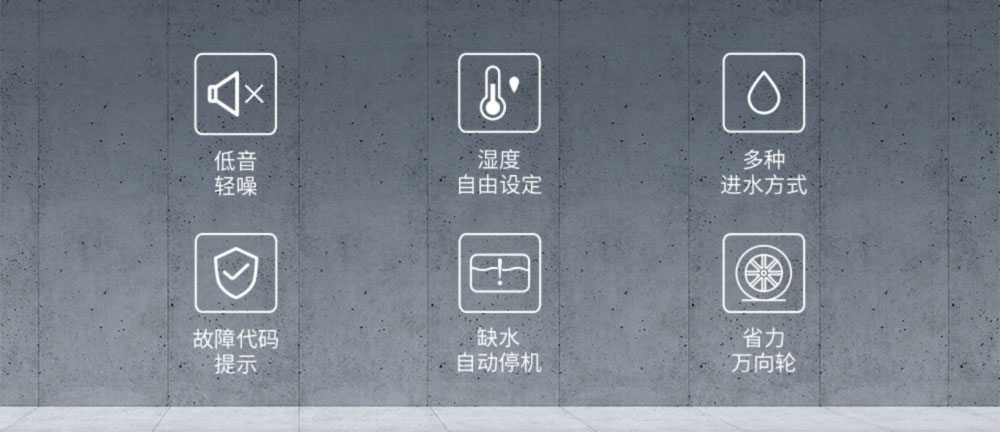 ·濕度控製:當濕度達到設定要求時自動停機,濕度低於設定值時自動開機,設定範圍30-90%。